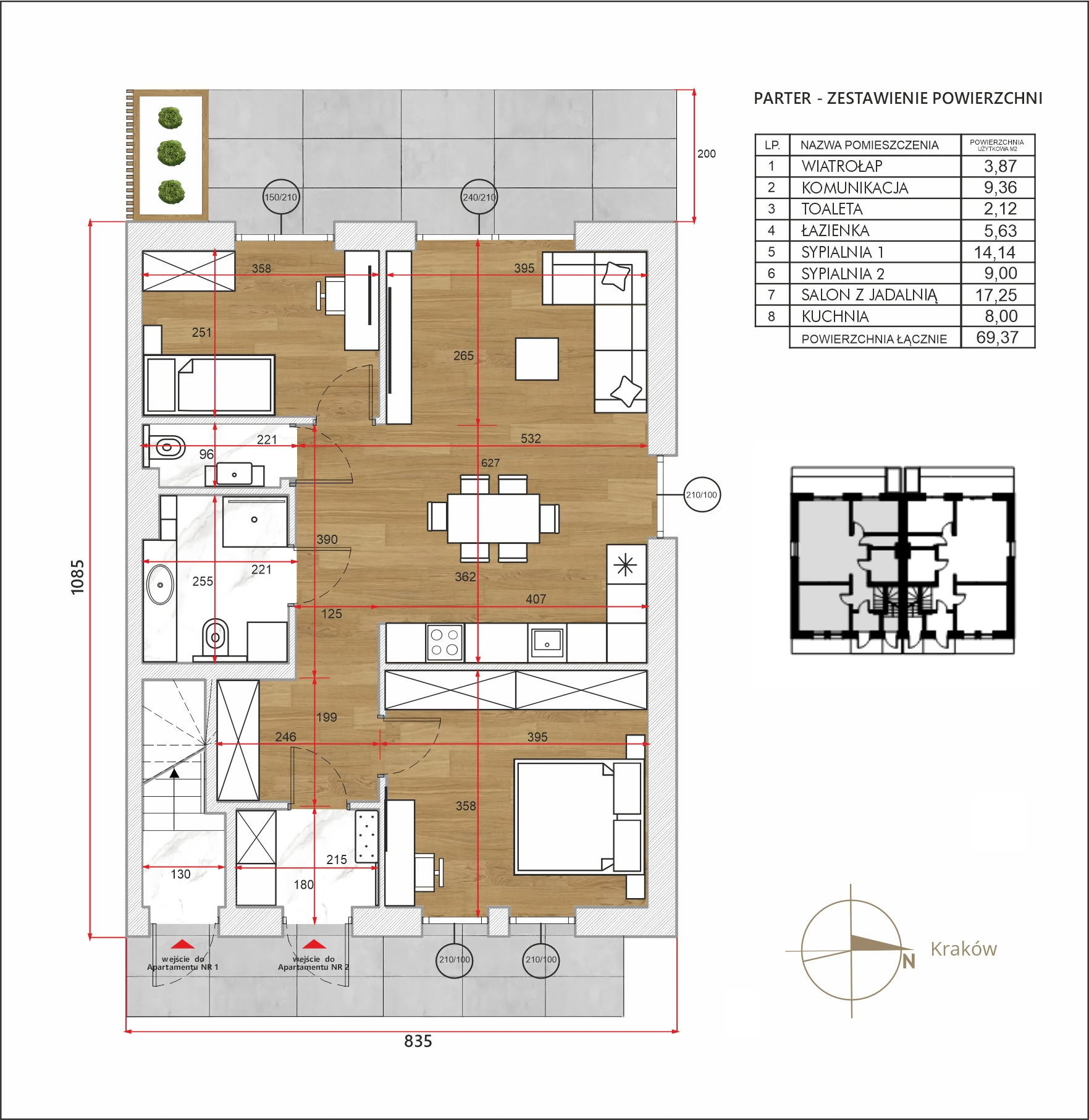 W naszej inwestycji znajdziesz apartamenty o powierzchniach od ponad 70 m² do niemal 100 m², co daje ogromne możliwości aranżacyjne. Przemyślany układ pomieszczeń z jasną strefą dzienną oraz prywatnym ogrodem sprawi, że z łatwością urządzisz przestrzeń idealnie dopasowaną do stylu życia Twojej rodziny.